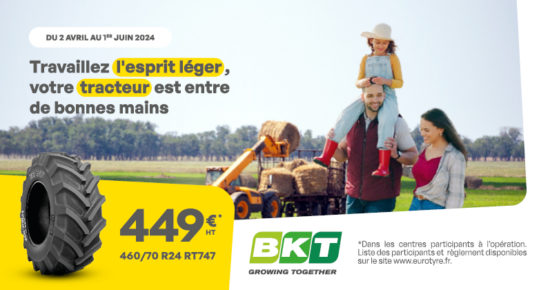 Promotion Pneus agricole BKT 460/70 R24 RT747 Du 2 avril au 1er juin 2024, profitez du pneu agricole BKT 460/70 […]
